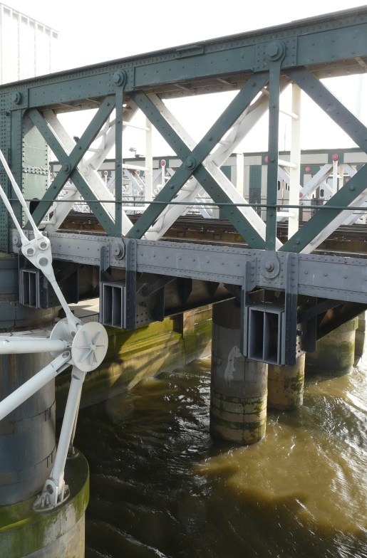 Digital photo of Hungerford Bridge (1845, I.K.Brunel / 1864, J.Hawkshow) with the detail from the new footbridge (2000-2003, Lifschutz Davidson Sandilands architects and WSP engineering Group)