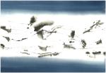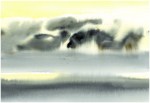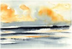 Invisble Sea – I made this series of paintings in Normandy while staring at the horizon line. Then I started writing a poem and trace lines in-between two monochrome registers resonating and reflecting the colours of the sky at different moments of the day (Sumi black ink and watercolour on Fabriano paper 30,5×45,5cm)